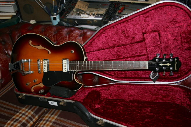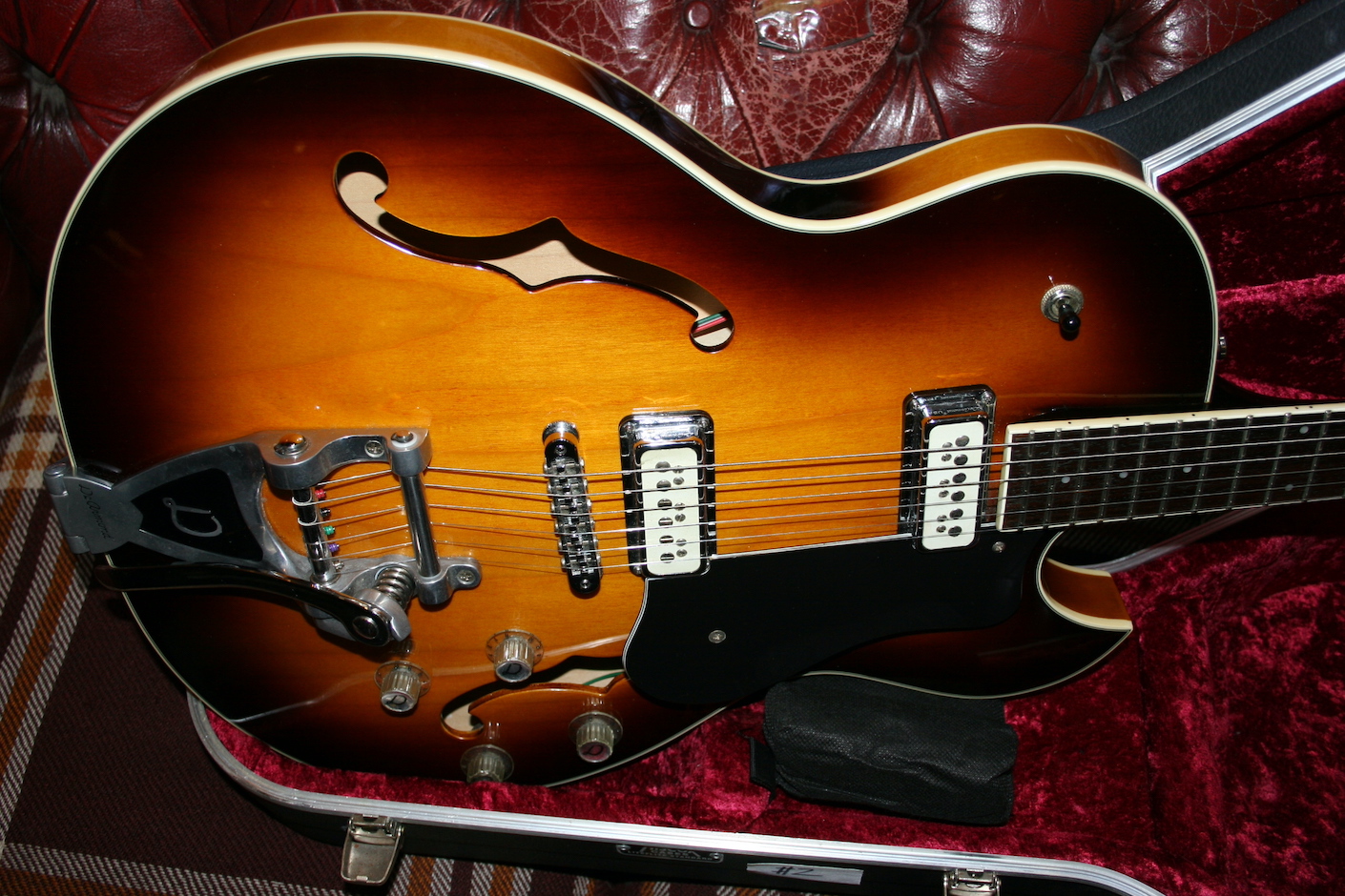 This is so much guitar for the money, made in Korea, the Dearmond Starfire Special with USA Dynastic pick ups which sound incredible. The “Digsby” Dearmond trem is great and look fantastic too.