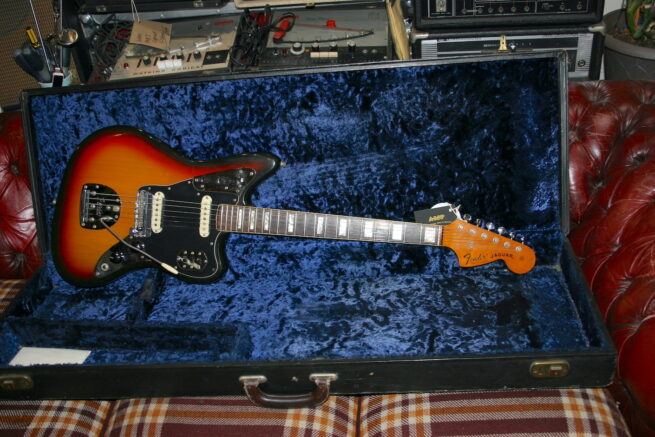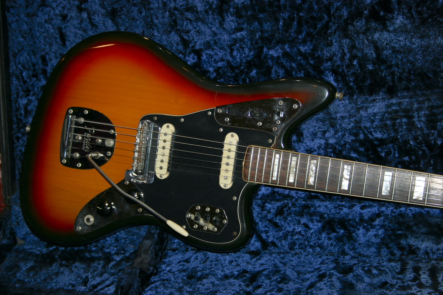 This is superb, 1975 Fender Jaguar in Sun or Target Burst.
