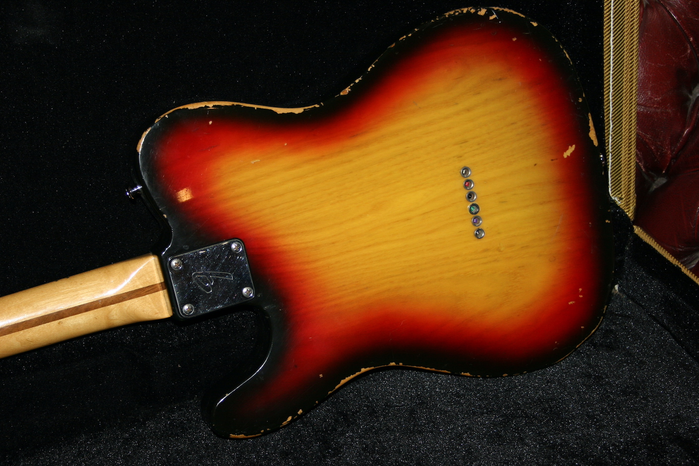 This has has an external jack plate installed at some point and the holes are still present. This has beeline loved and hard working Telecaster. Typical 70’s weight but very well balanced.