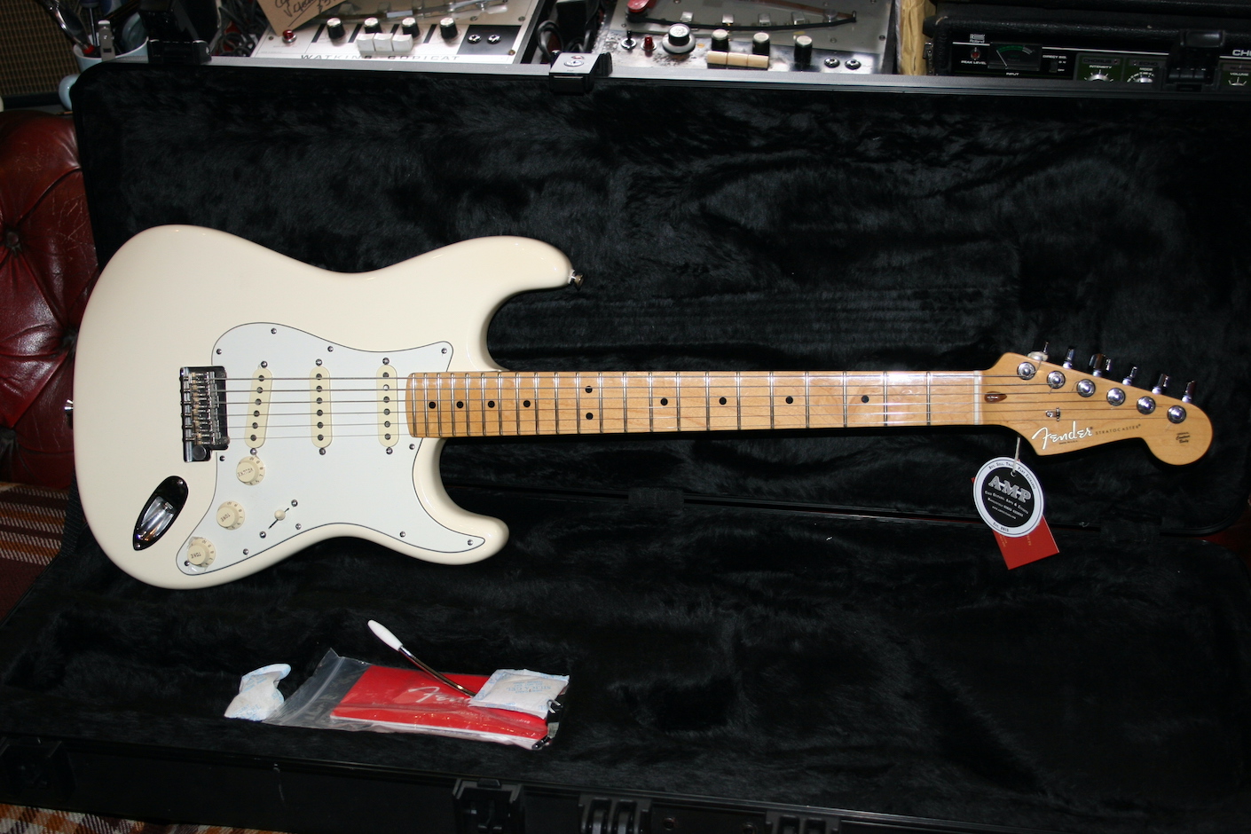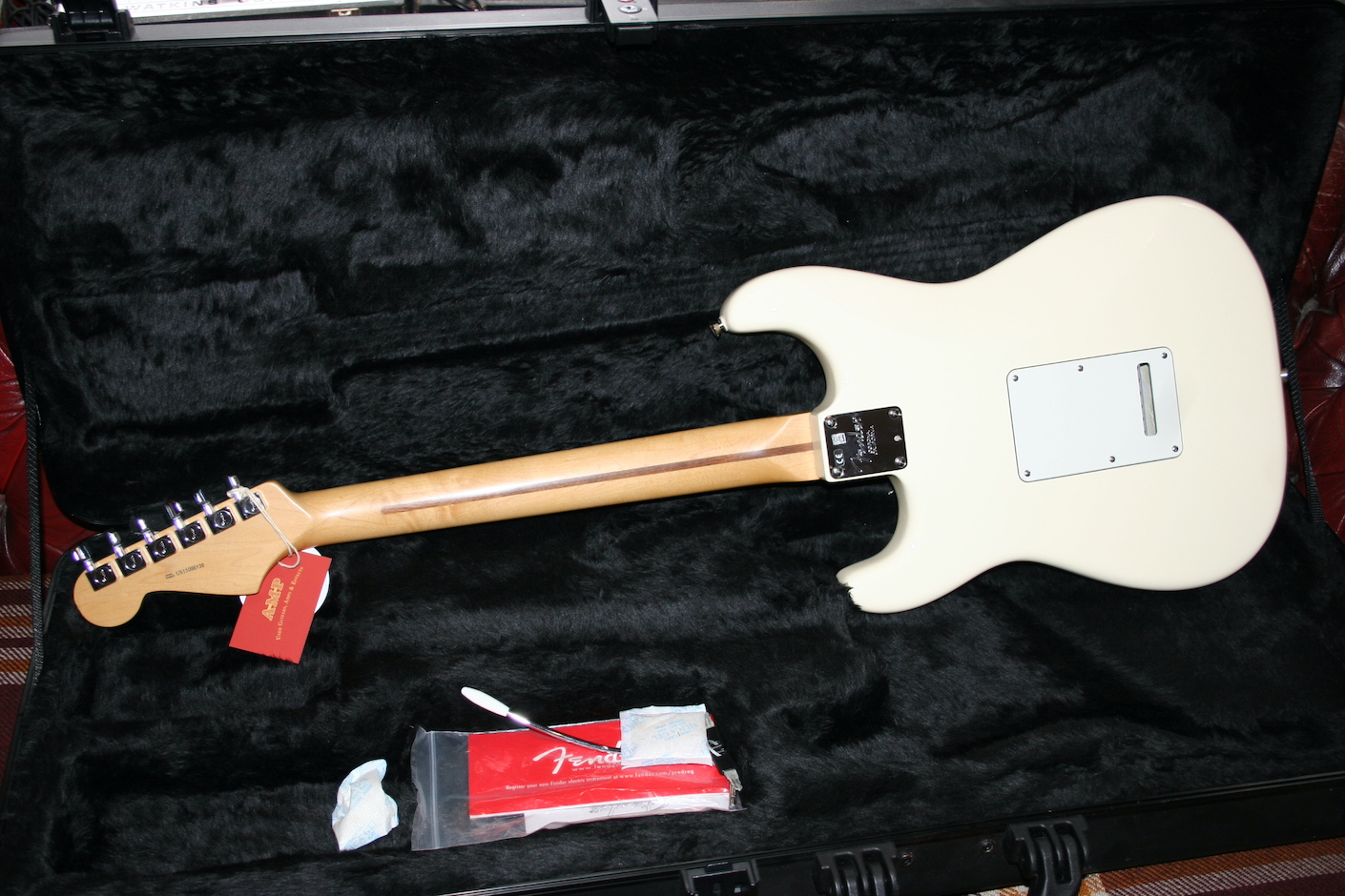 Comes with fender hard case, tags and trem arm
