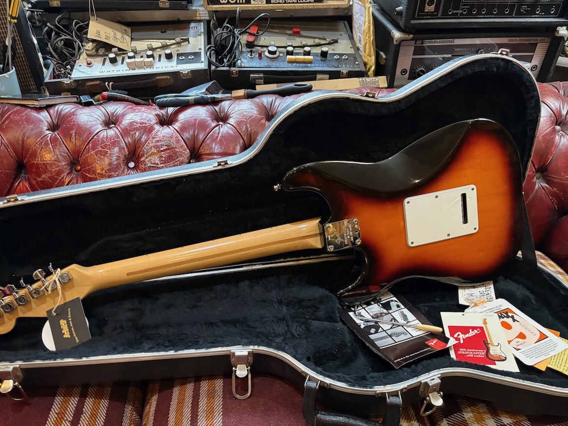 Comes with original red label Fender case, anniversary tags and trem arm.
