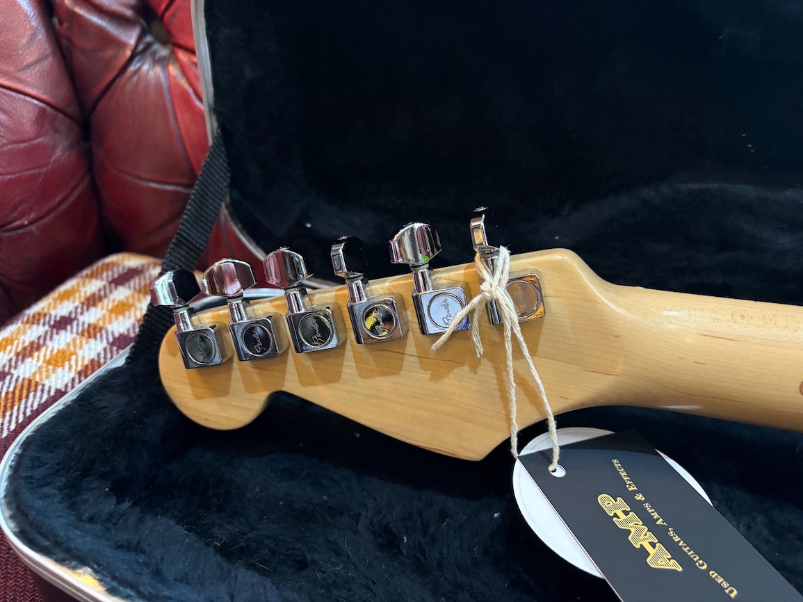 Super clean condition for a 31 year old Fender with no dings, polish swirls in the light if anything. Fantastic player and the maple neck C profile with the satin finish feels great. Very minor to no fret wear.