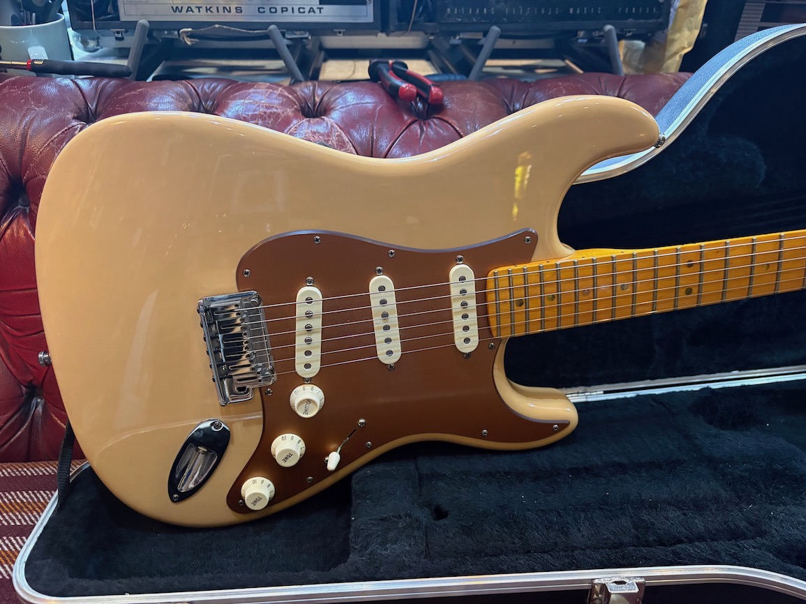 Fender American Deluxe Stratocaster 2009 in a great Honey Blonde finish. Slim 50’s V neck similar to the ’57. Samariun Colbolt Noiseless pick ups, S1 switching and maple neck.