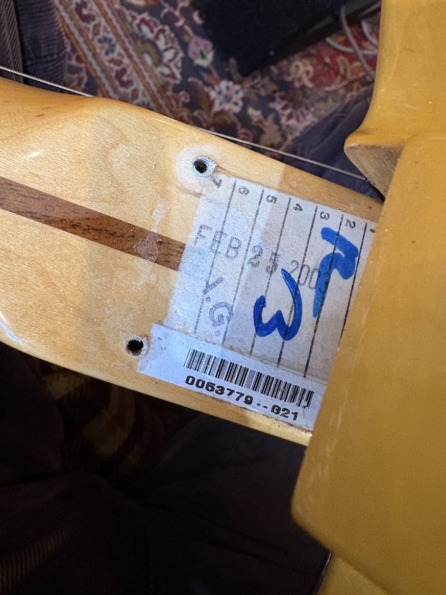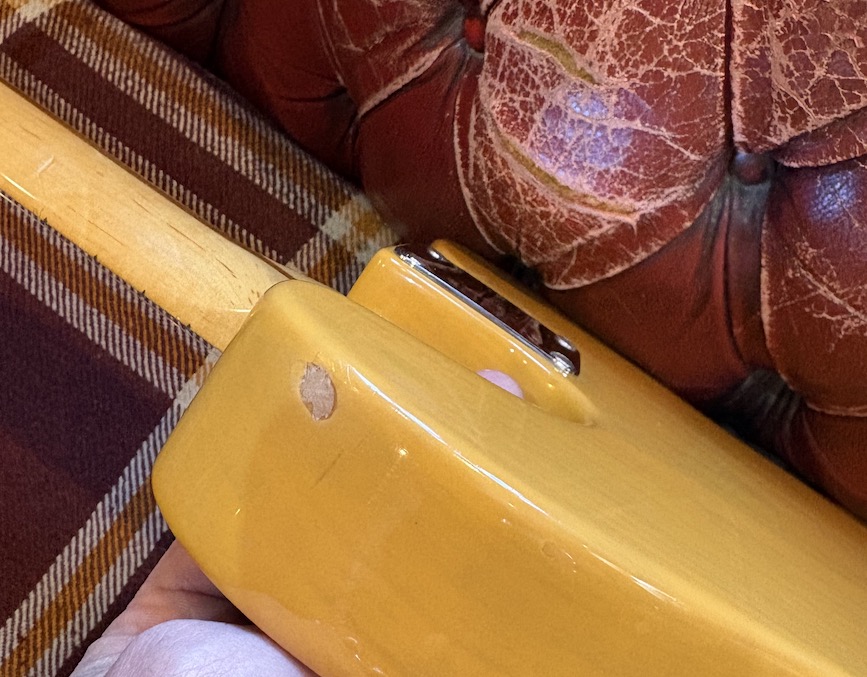 Slight lacquer wear where the arm would rest and one small mark on the underside of the horn. No visible wear on the frets or board.
