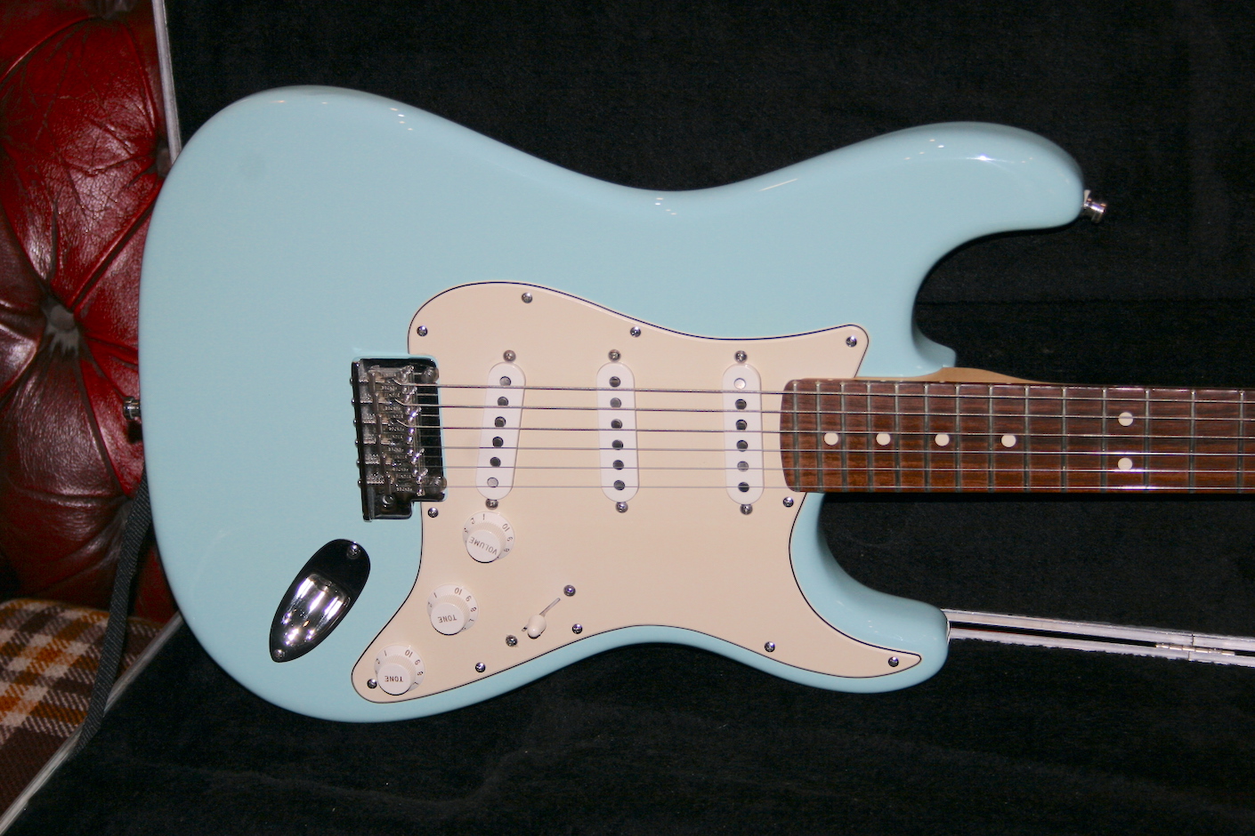 Two point trem and American Strat pick ups sound fantastic. very clear and a little hotter to my ear.