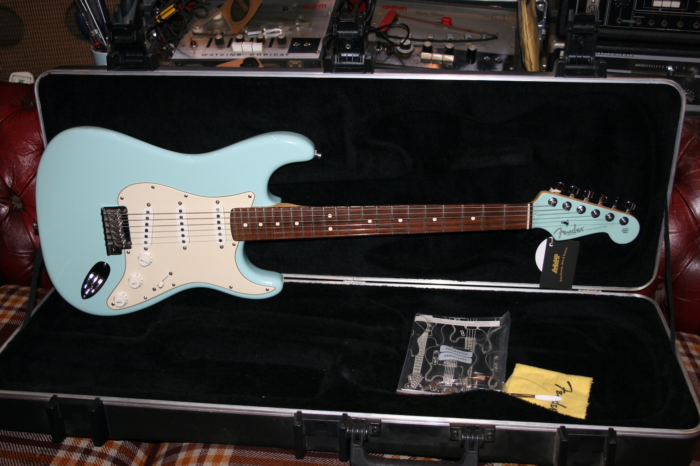 Very nice rosewood board and frets are very clean. One long term owner and in excellent condition. Comes with OHSC, trem arm, cloth and owners manual.