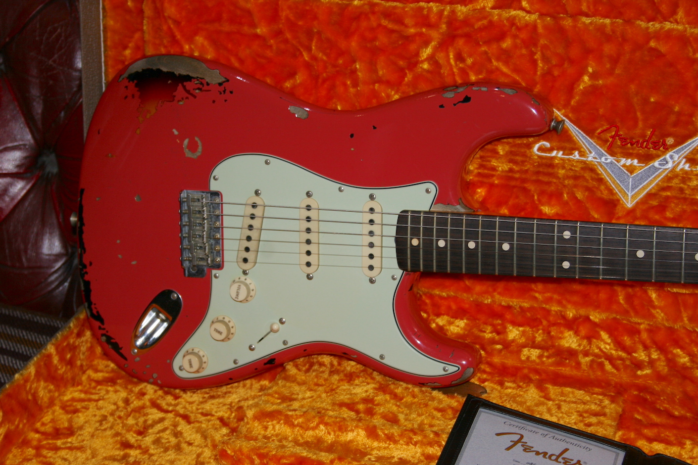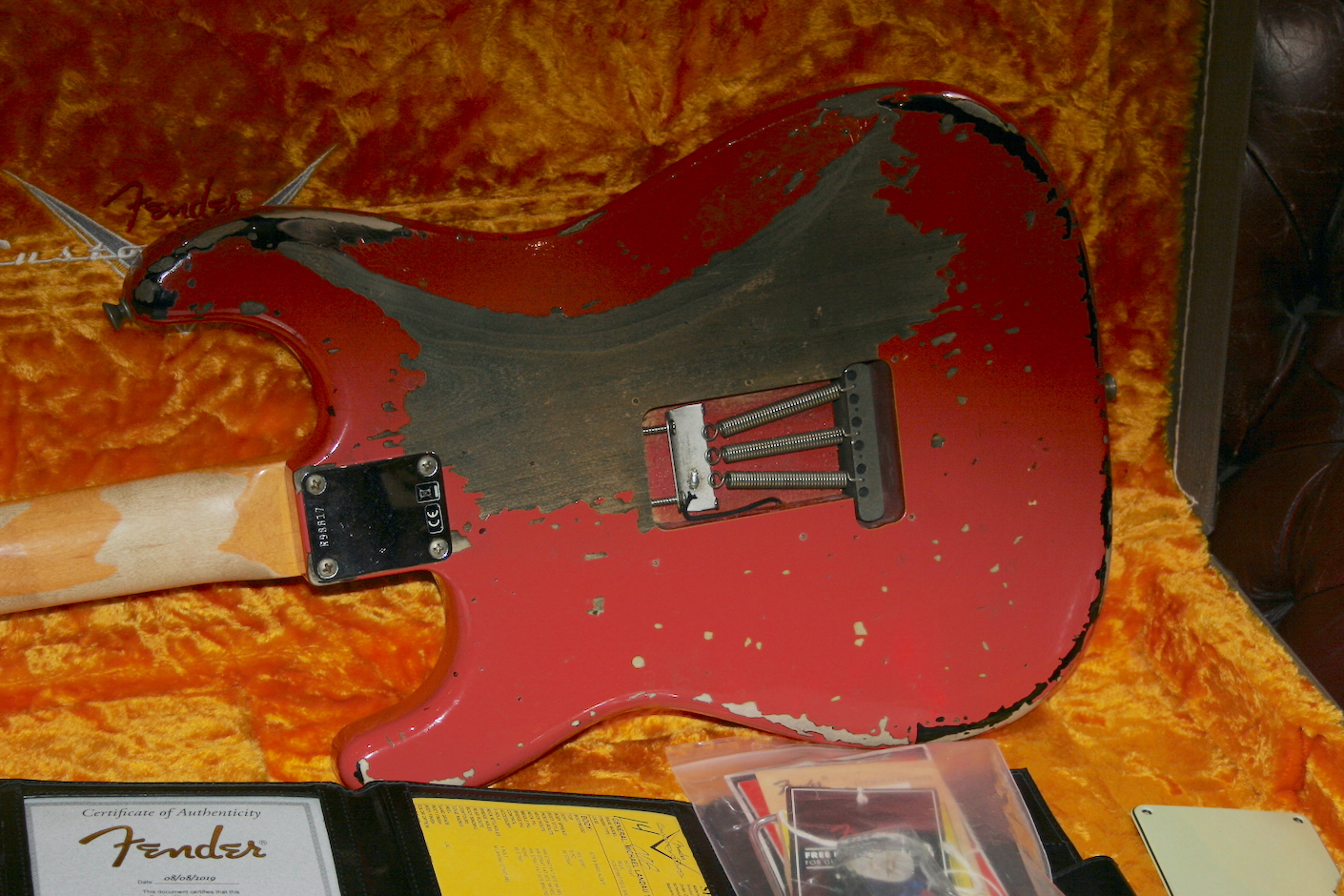 Amazing Nitro Fiesta red over Burst Finish and accurately aged to the original.