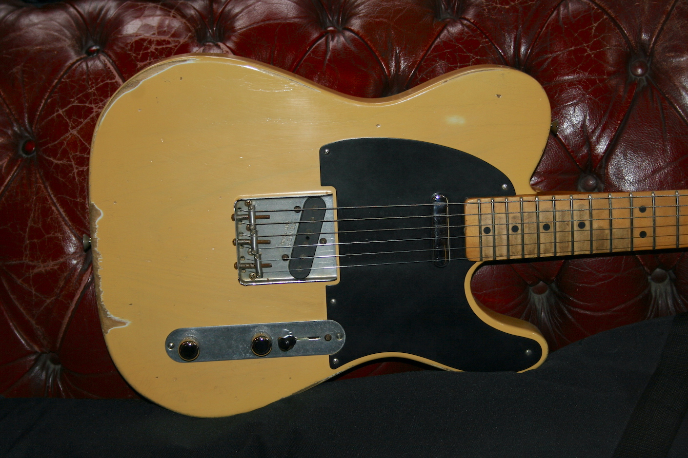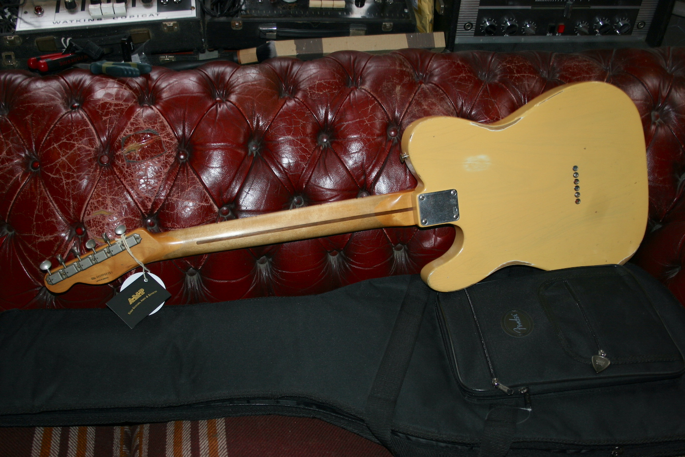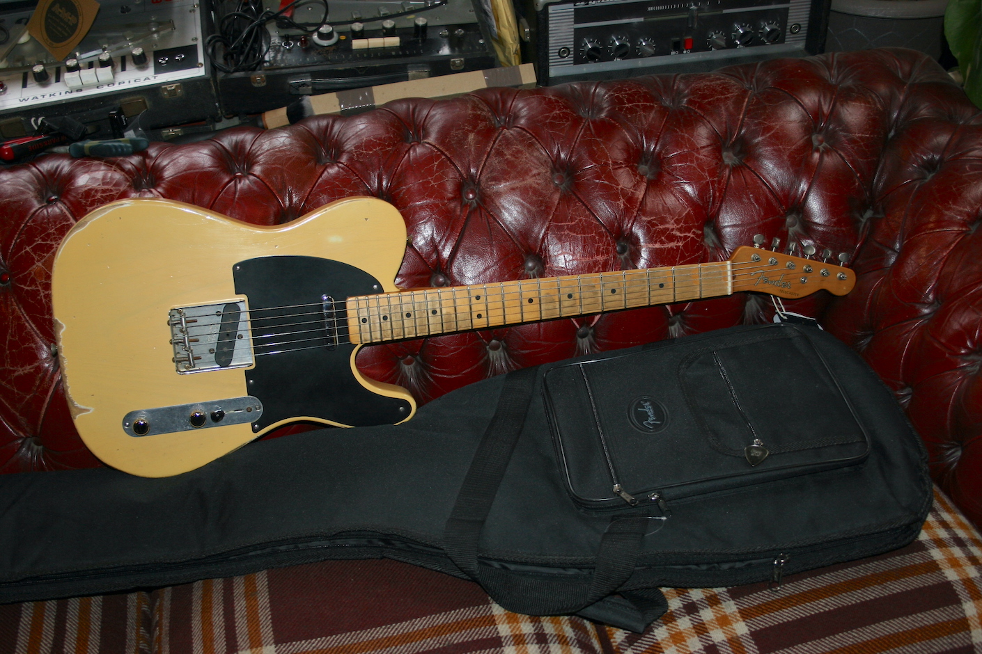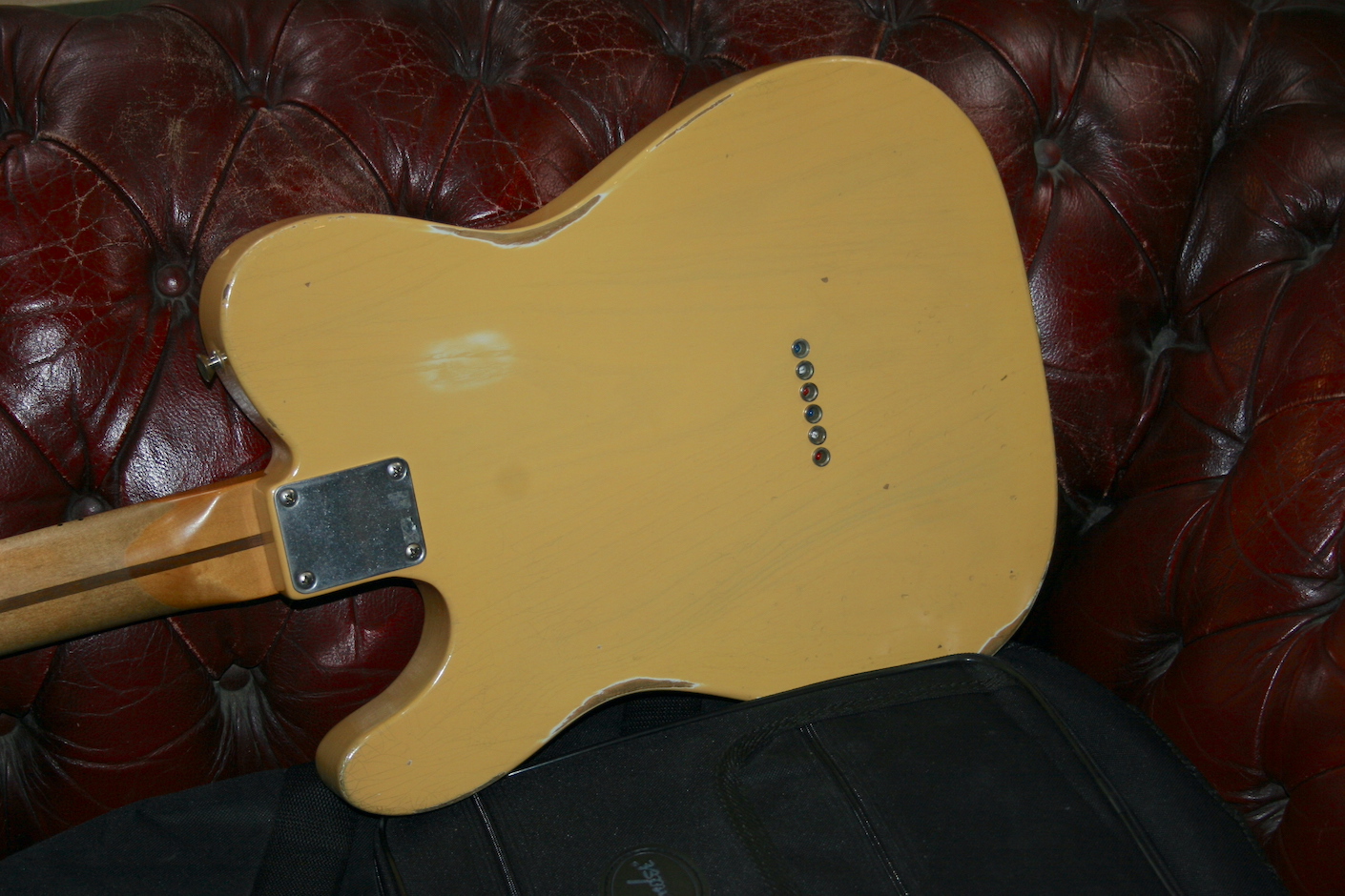 Fender Roadworn 50’s Telecaster made in 2008 which makes this the first issue. These really give the CS models a run for the money. As I always state, these are not just cosmetic, they play and feel authentically vintage. These early issue Roadworn models have more wear detail and ageing than later issues and the V neck profile is another great feature. 7.25 radius and Tex-Mex pickups are an excellent feature too.