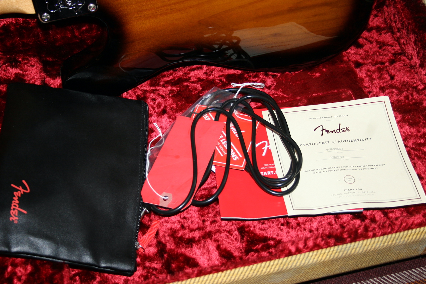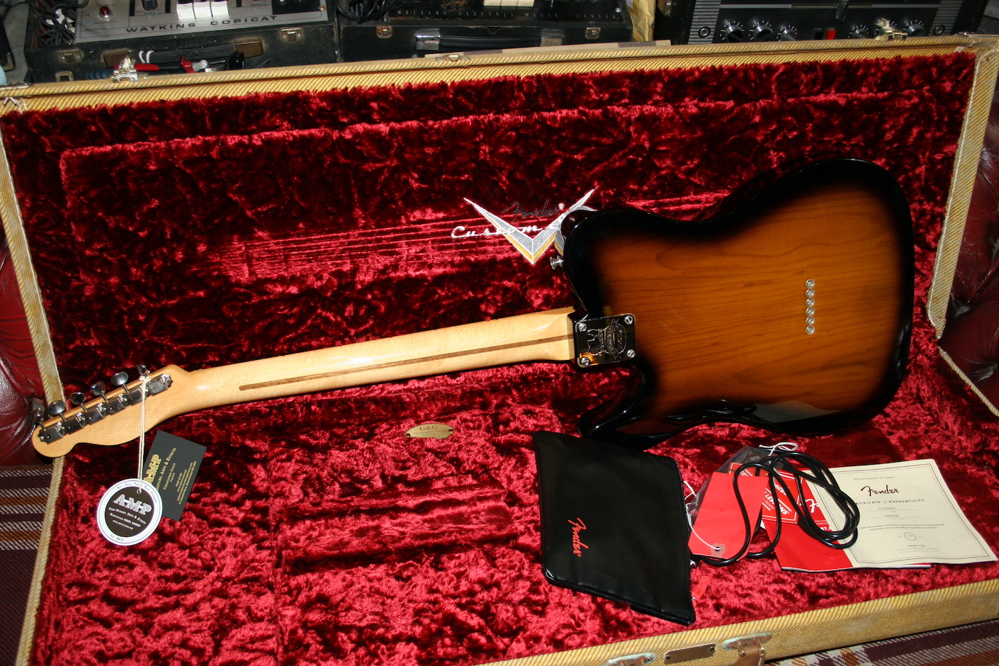 The original tweed hard case was sold by a previous owner but I have sourced a replacent custom shop tweed hard case. Please not that this though is not a custom shop guitar.