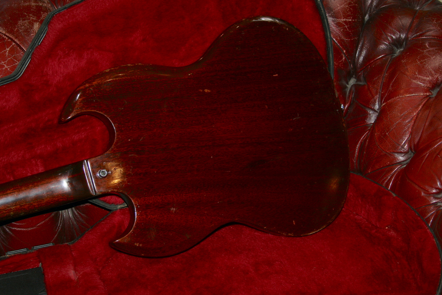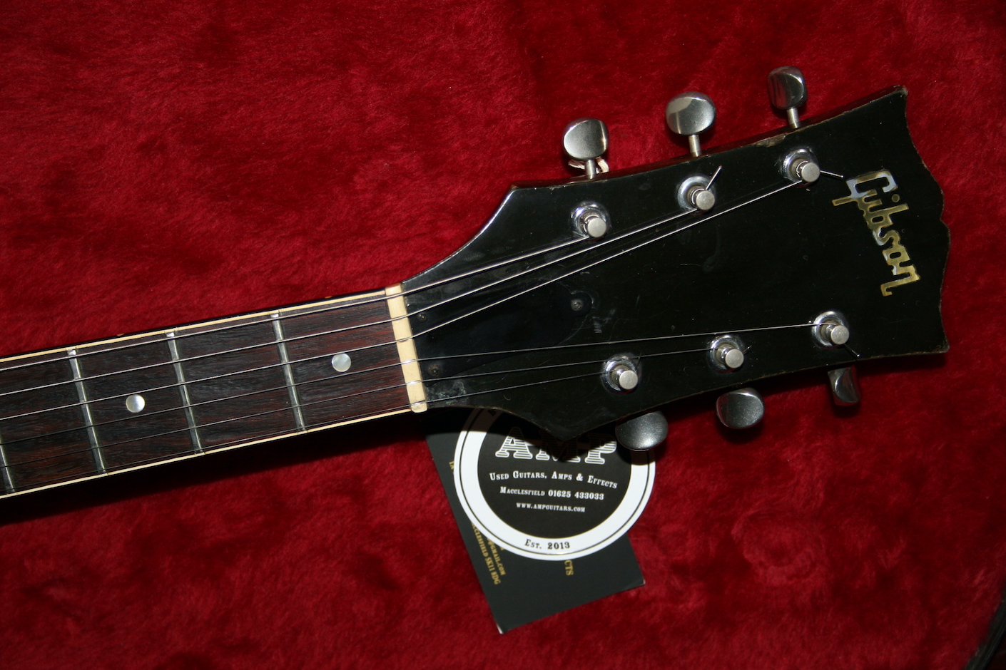 No neck repairs. There is a lacquer crack on the horn cut away which is quite common and not structural. Lots of honesty play wear and dings which give this a great patina. The P90’s sound incredible too. Slim neck with a 41mm nut.