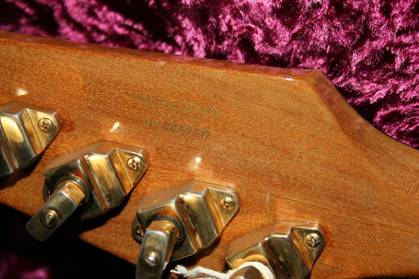 Waterslide gold Limited Edition 00 serial number on the headstock rear.