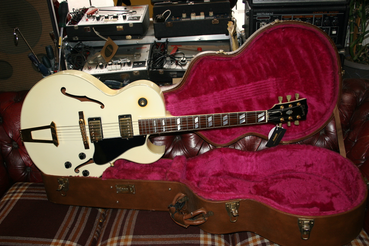 Gibson 1988 ES175D in a beautifully naturally aged Arctic White.