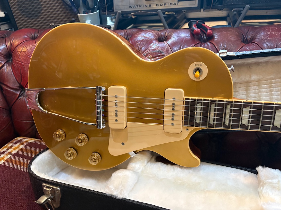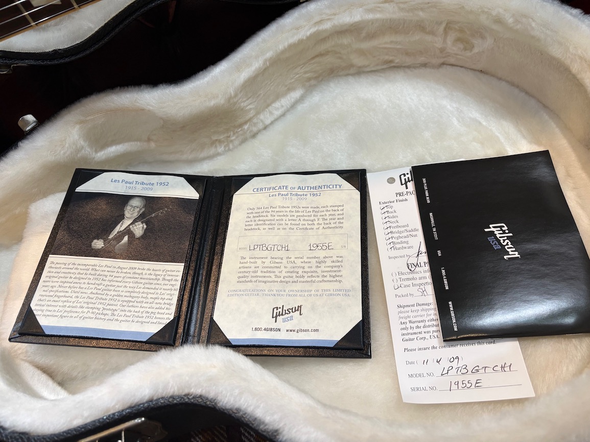This is stunning, Gibson 2009 Les Paul Tribute Gold Top Prototype. Of 564 made to commemorate the life of Les Paul. Individually hand numbered, this being 1955E. 6 were made per year for the years that Les Paul was alive from 1915 to 2009 and the 6 were denoted by A, B, C, D, E & F are year serial. so 1955 was the year and