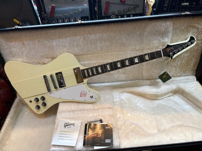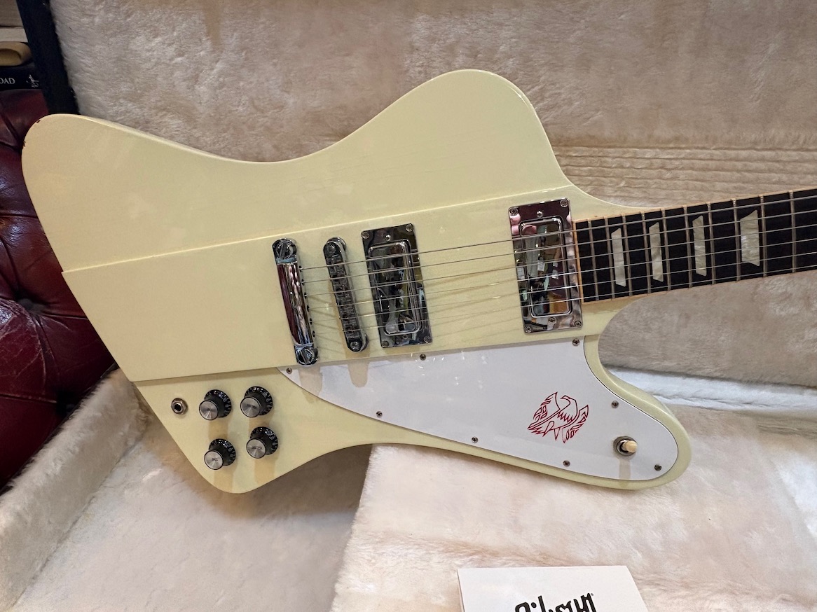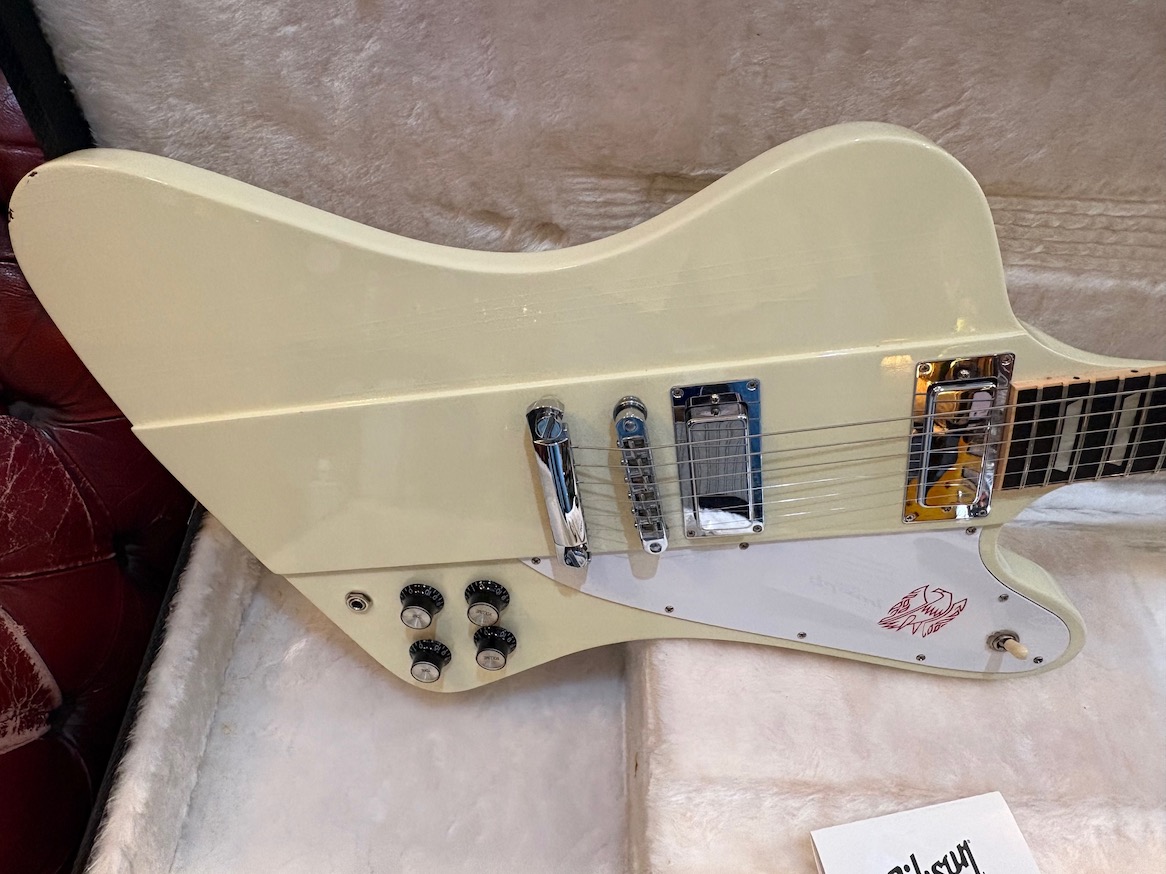 Gibson 2013 Firebird V in a classic white that is fading wonderfully to a creamy hue.