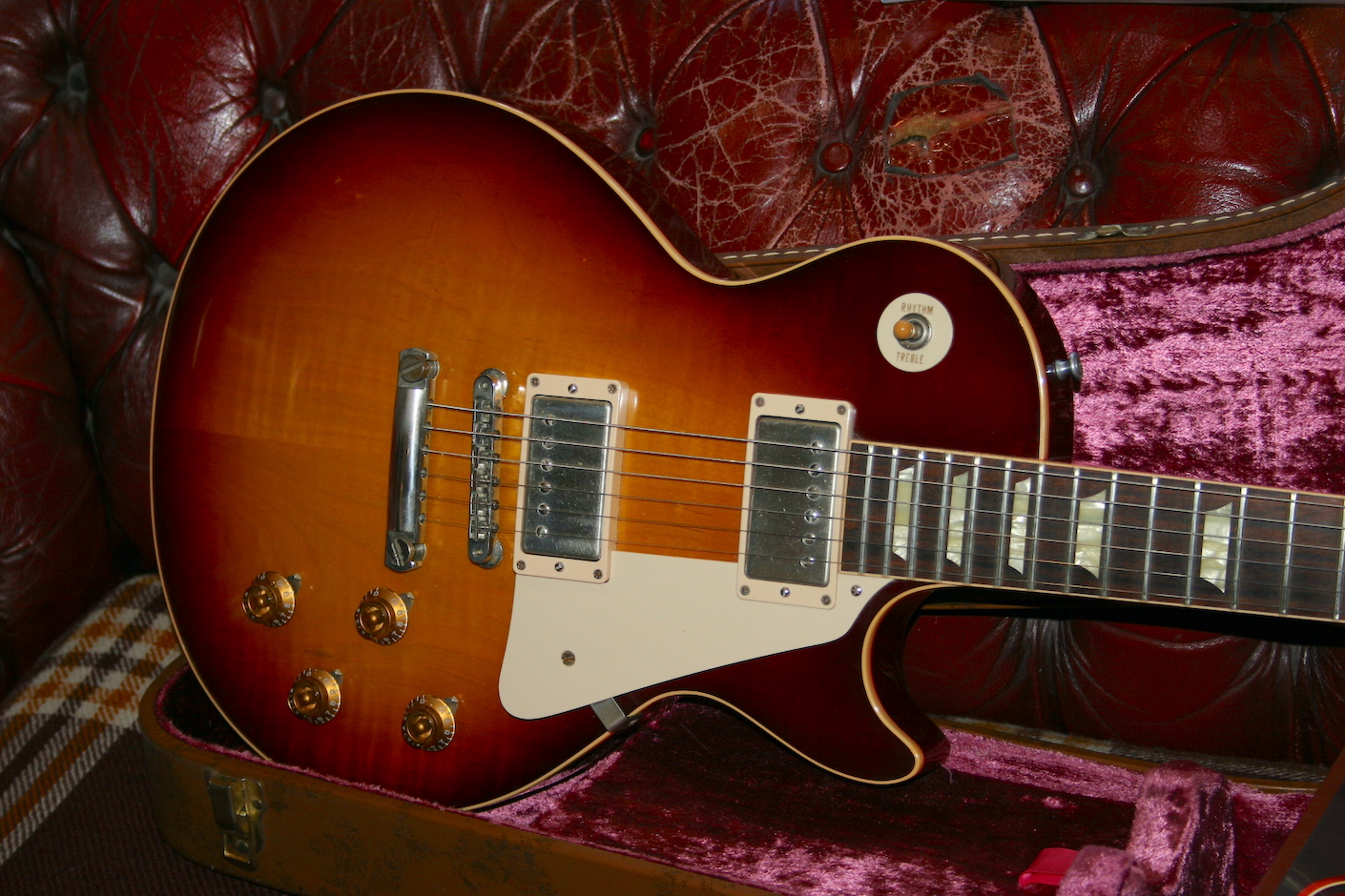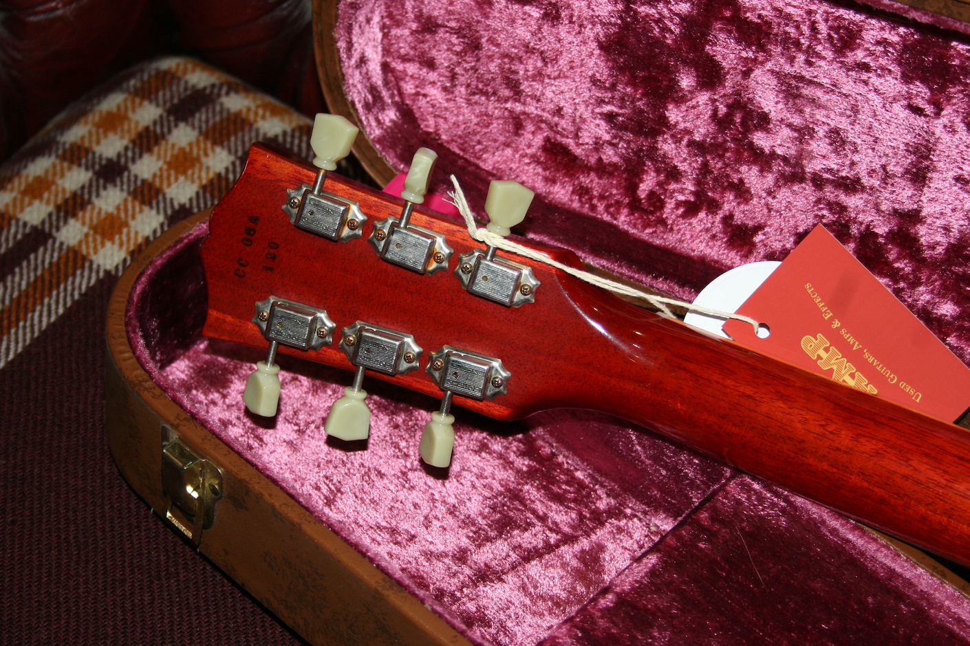 The original colour was quite rare in that it hadn’t faded as most during the short ’59 window did. The deep shade of cherry is between Bourbon and faded tobacco and totally unique to this guitar.