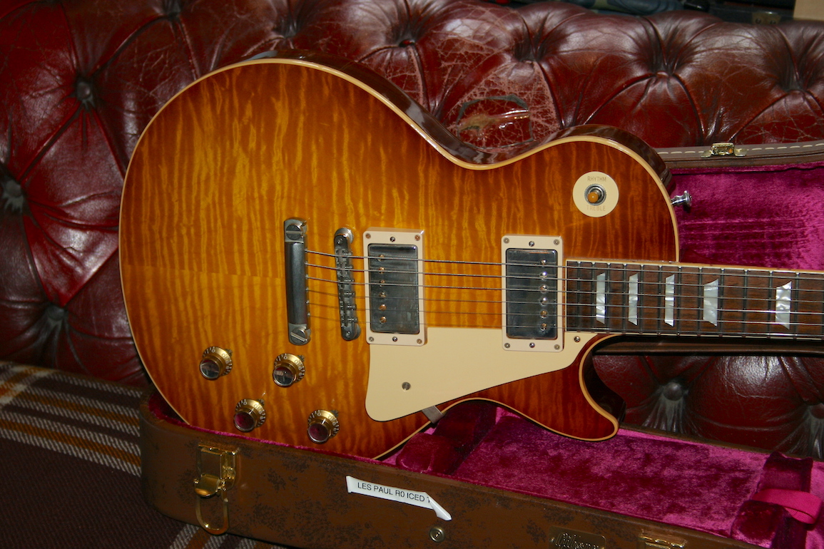 Stunning 2017 Gibson Historic Reissue 1960 or R0 Les Paul Standard in a rarely seen flame top ice tea or honey burst. The R0 are commonly known for their more cherry burst tops as from ’58 & ’59 when the finish faded quickly in shop windows, Gibson altered the ingredient to fade less in 1960.