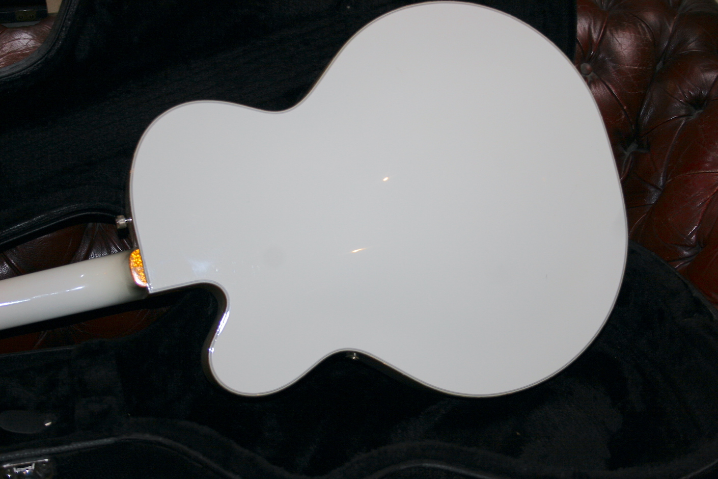 The ebony board is lovely and the the golf sparkle binding is a classic feature on the Falcon framing the body wonderfully.