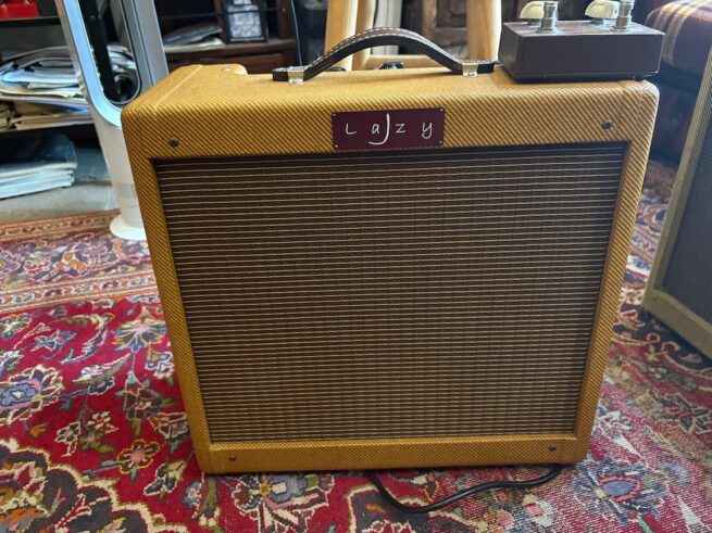 Probably one of the best boutique hand made amps today, Lazy J. This is the 5w which is fully loaded with Reverb and Tremolo. The tone of These is on another level. I personally own the 10 and 20 versions of these and they stand alone in their field. So musical and anything form humbuckers to single coils, I cannot fault any tone that comes out of these.