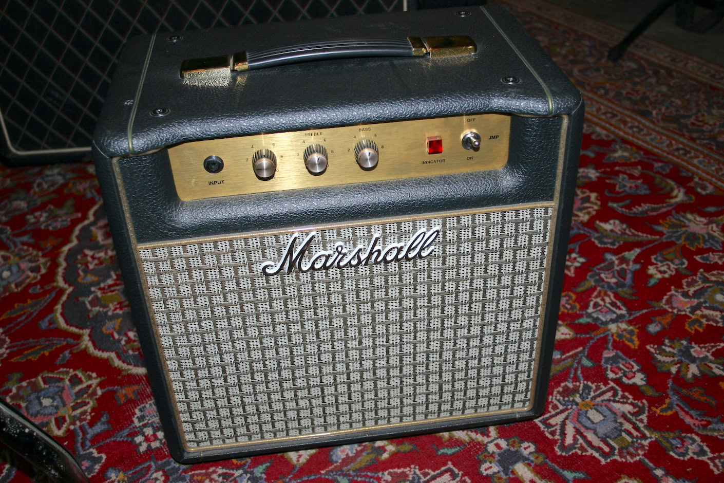 Marshall JMP1C 50th Anniversary Valve Combo. Simple Volume, Tone and Bass with low or hight power and boost switch. This thing is loud! And what a tone! The most fun you’ll have with any 1w Valve amp.