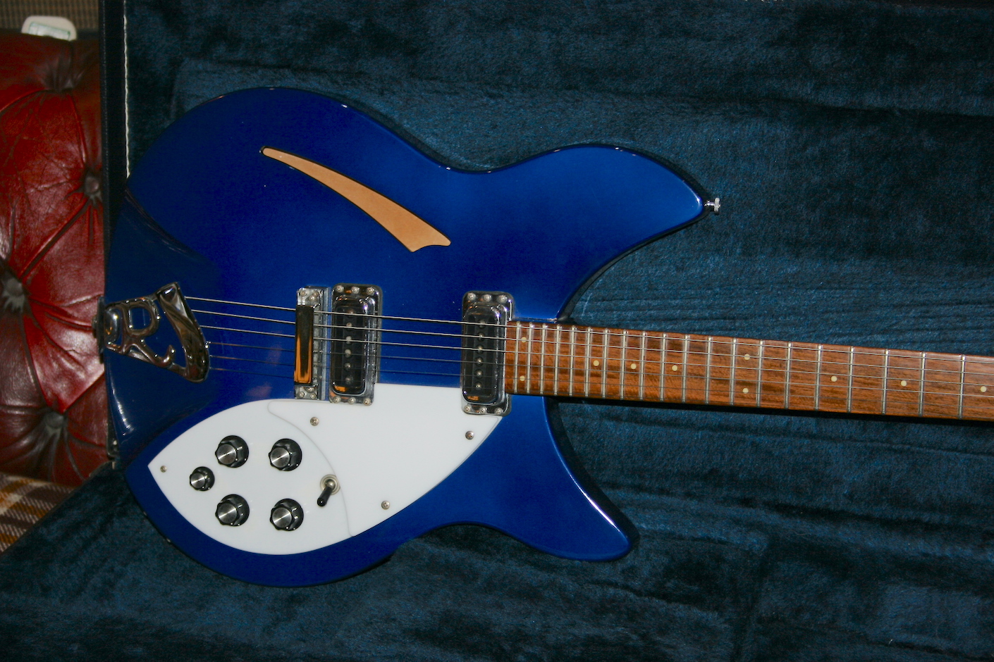 Fantastic player and the Big Gain Rickenbacker pick ups do sound superb. Some minor wear in places, the worst being a small chip on the rear as seen in the image.